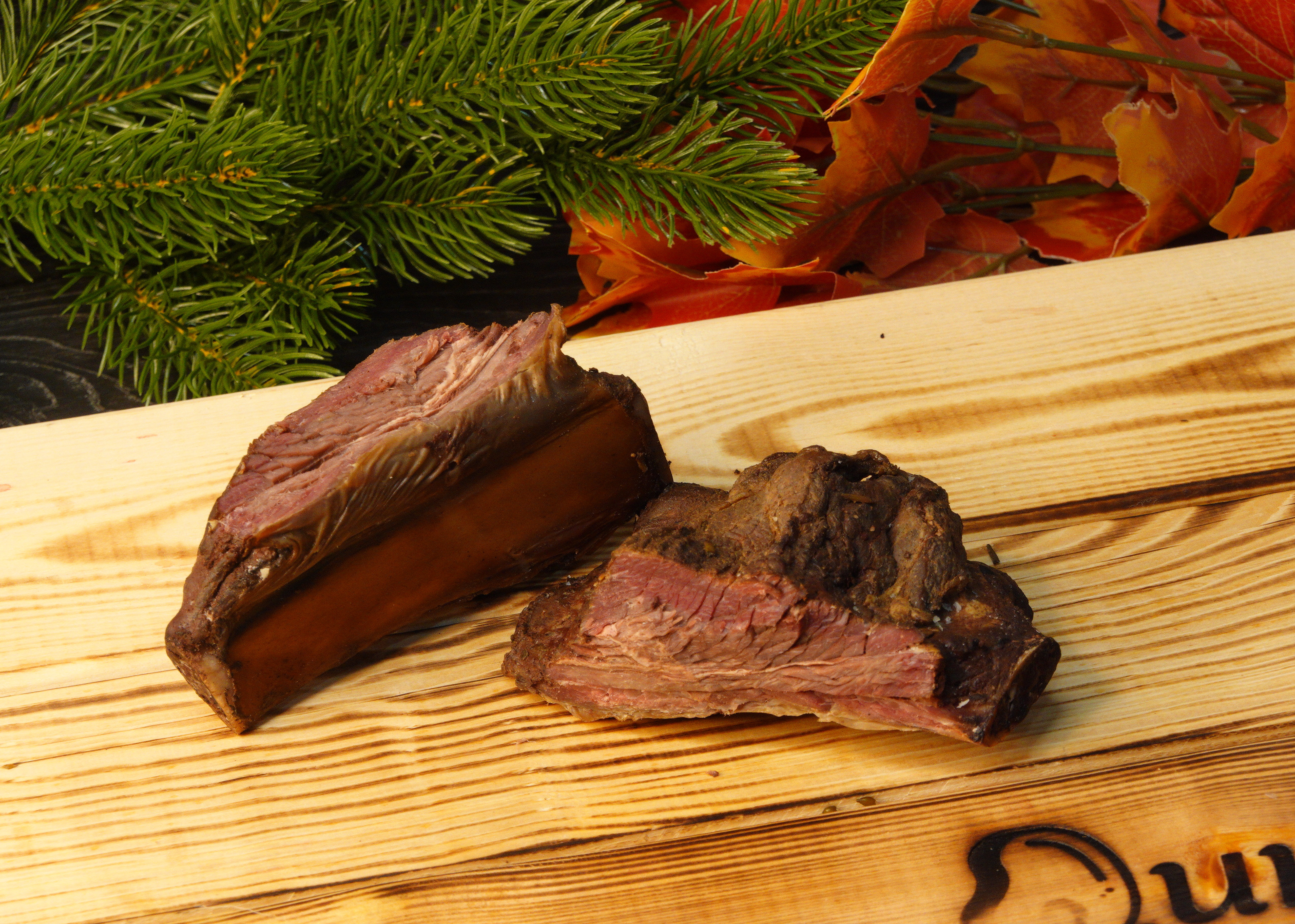 Попробовать ребра лося горячего копчения и насладиться их вкусом обязан каждый уважающий себя гурман. Мясо дикого лося не содержит никаких кормовых добавок, антибиотиков и консервантов, ведь он питается только подножным кормом в лесах, удаленных от человеческой цивилизации. При приготовлении деликатеса мы также не используем консервантов чтобы сохранить мясо в чистом, первозданном виде. Ребрышки отлично подойдут в качестве закуски к любому столу. Идете в гости - возьмите ребрышки с собой, и вся компания с удовольствием отведает их и будет благодарна вам за такое изысканное и экзотическое блюдо.