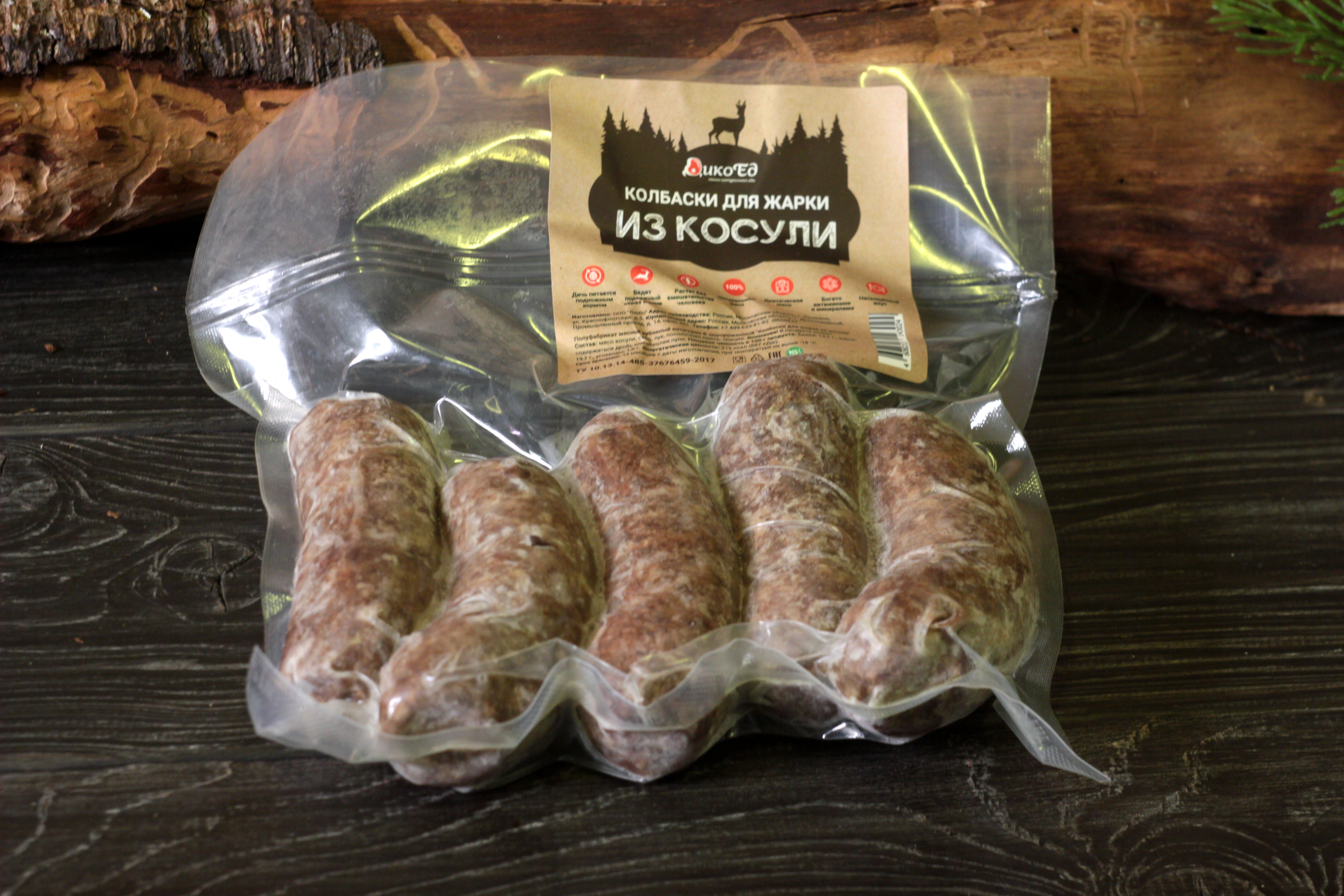 Дичь, Косуля, Полуфабрикаты из косули, Полуфабрикаты, Колбаски для жарки, Для барбекю, Мясные полуфабрикаты.