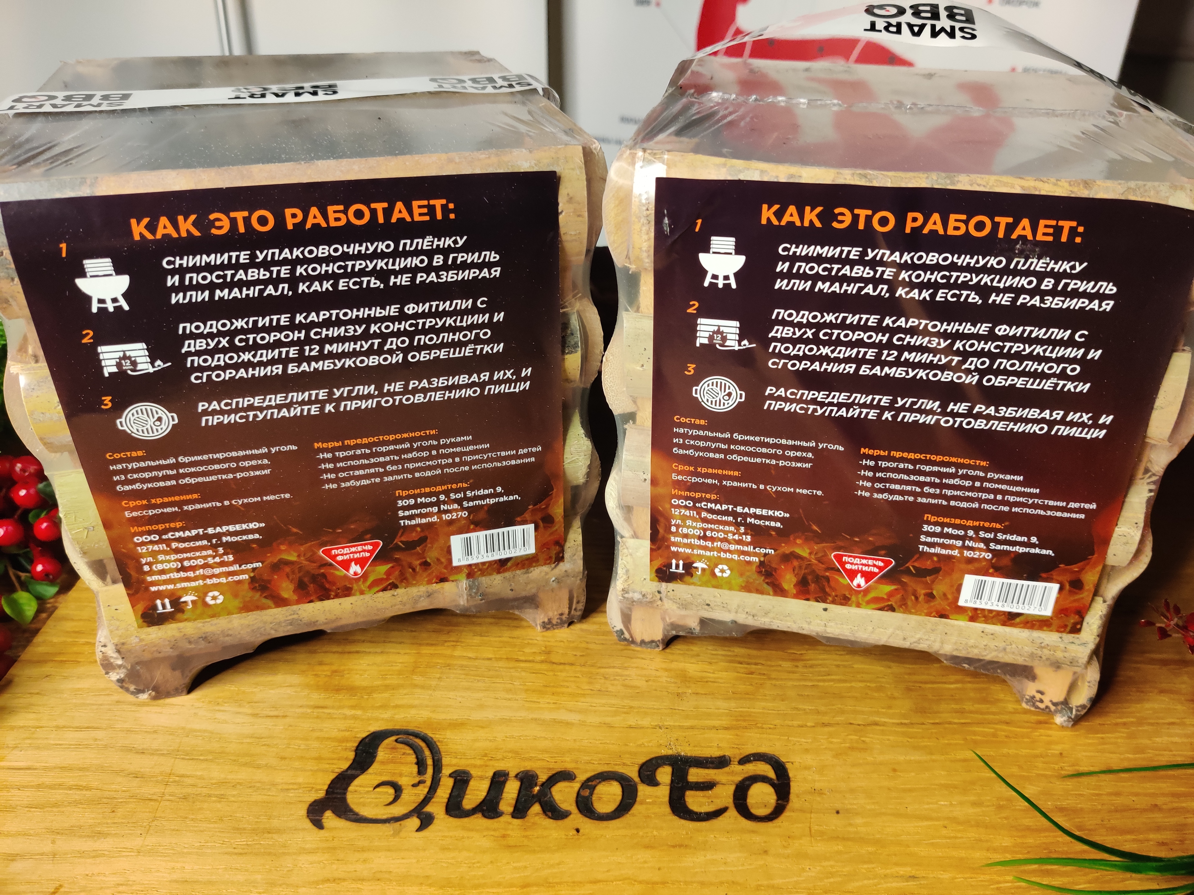 Упаковка: деревянная коробка 2кг (вес угля 1,6 кг)