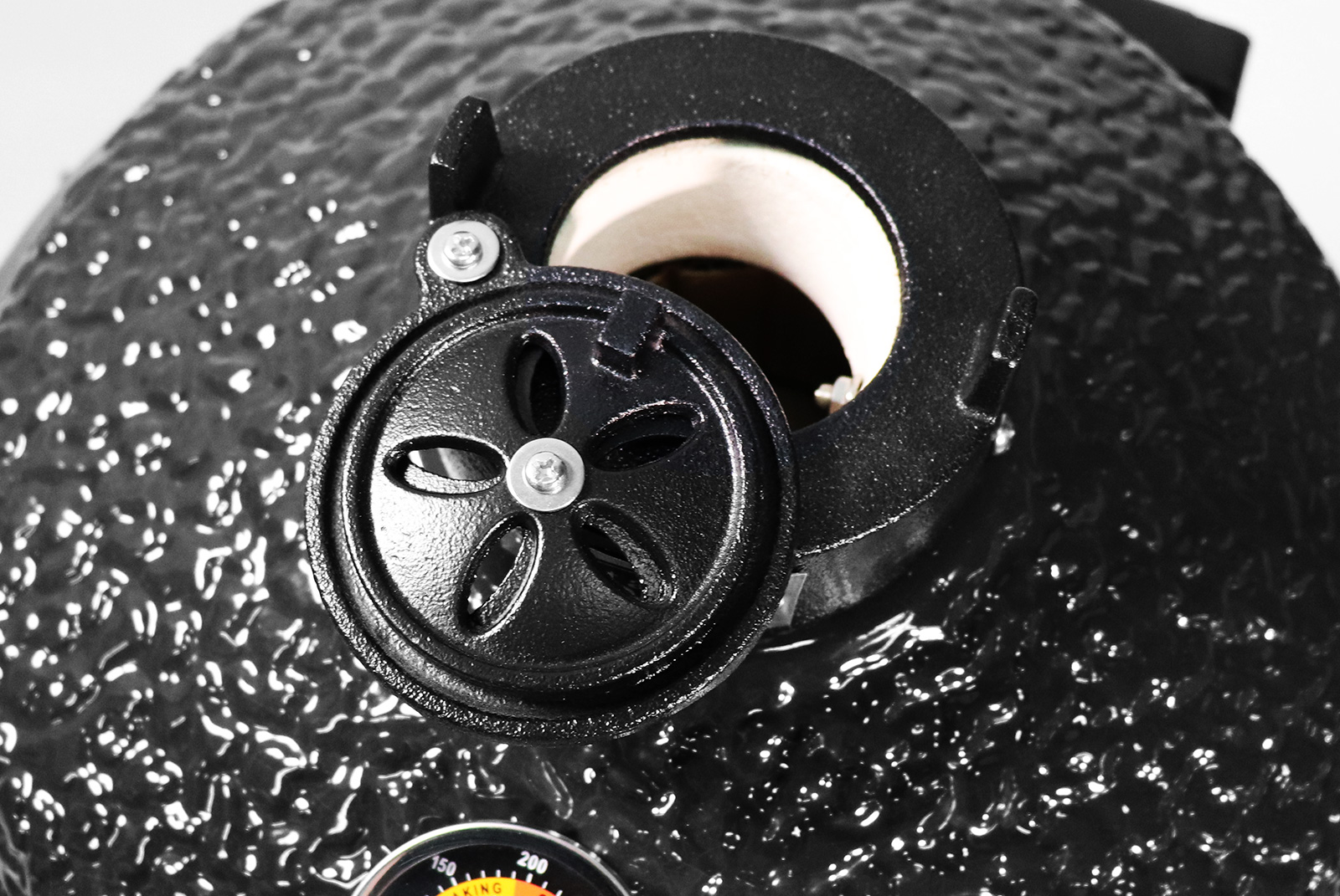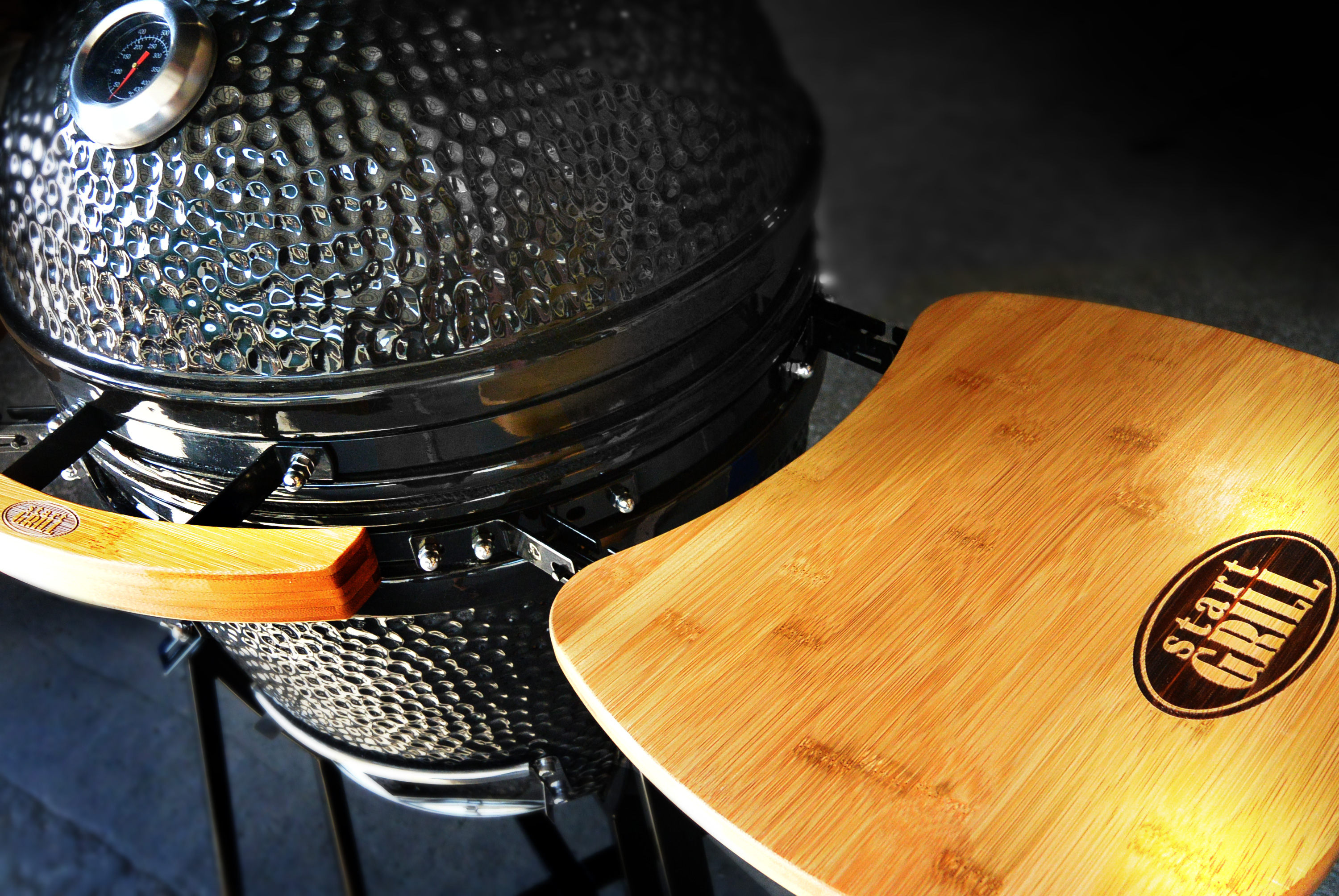 Керамический гриль характеризуется длительным сроком службы даже при круглогодичном использовании. Керамические стенки не подвергаются коррозии, не прогорают и не деформируются ввиду свойств материалов, использованных при изготовлении прибора. Толщина стенок – 20 миллиметров, они невосприимчивы к контрастным погодным условиям и жаропрочны даже в условиях низких температур окружающей среды. Иные элементы конструкции – обруч и тележка – выполнены из стали. Овальная форма позволяет аккумулировать тепло и экономно расходовать уголь. Регулируемые клапаны впускают кислород для горения топлива и отводят влагу, лишнее тепло и дым от горения. Размер жарочной поверхности 495 миллиметров удобен для приготовления стейков, шашлыка или запекания овощей для большой компании.